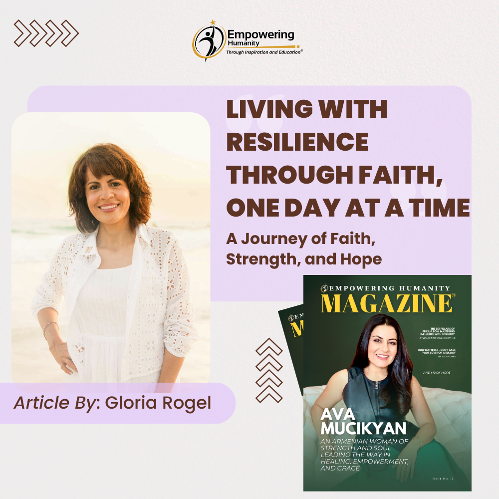 To read Gloria’s inspiring and empowering full article, _click on this link and look for page 63. Get your FREE access to Empowering Humanity Magazine™ Now!